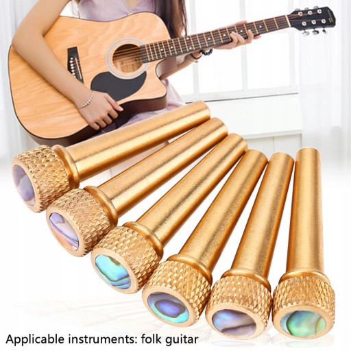 Kołki mostkowe pasują do większości tradycyjnych mostków do gitar akustycznych, są wykonane z mosiądzu i pasują do prawie wszystkich marek sześciostrunowych gitar akustycznych.