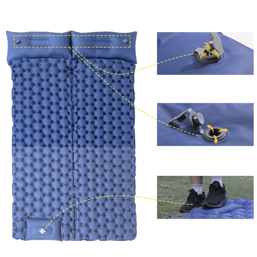 🏕️ Przygotuj się na wygodny sen na świeżym powietrzu dzięki podwójnemu materacowi dmuchanemu na zewnątrz z poduszkami i pompką do stóp! Ten wygodny materac zapewnia niezrównany komfort i wsparcie podczas noclegu pod gołym niebem.
