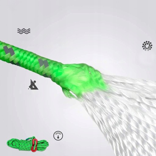 Rozmiar: Każda lina ma 4 metry długości i średnicę 4 mm. Każda lina może utrzymać do 200 kg. W zestawie 10 lin namiotowych