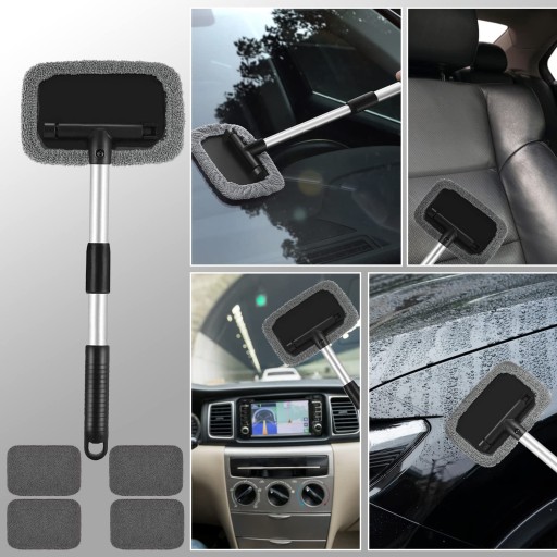 Świetny design do czyszczenia szyb samochodowych: Trwały i ergonomiczny uchwyt, łatwo rozszerza się do trudno dostępnych podstaw okien, pozostawiając powierzchnie do równomiernego czyszczenia. Zmywalna podkładka z mikrofibry o dobrej chłonności wody.