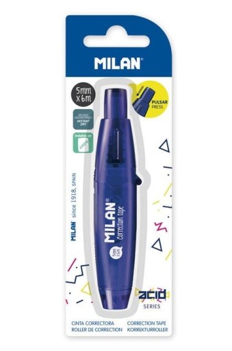 Korektor w taśmie z wysuwanym przyciskiem. Sprawdza się na wszystkich rodzajach papieru, nie pozostawia śladów na fotokopiach czy faksach.