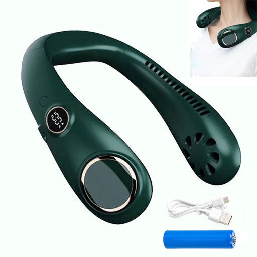 Wiszący wentylator na szyję, bezlistny projekt, wyświetlacz cyfrowy, leniwy wentylator na szyję 3 biegi