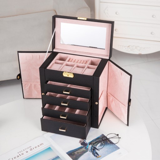 Nasza szkatułka na biżuterię ma wielowarstwową konstrukcję, dzięki czemu ta sama przestrzeń może pomieścić więcej biżuterii. Każda warstwa została zaprojektowana tak, aby spełnić różne potrzeby, dzięki czemu cała biżuteria jest przechowywana oddzielnie i uporządkowana.