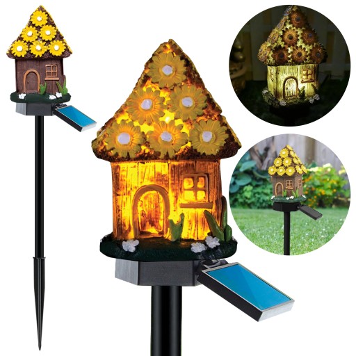 Lampa Solarna Lampka Ogrodowa Zewnętrzna Wzór Bajkowy Domek Wbijany 40cm