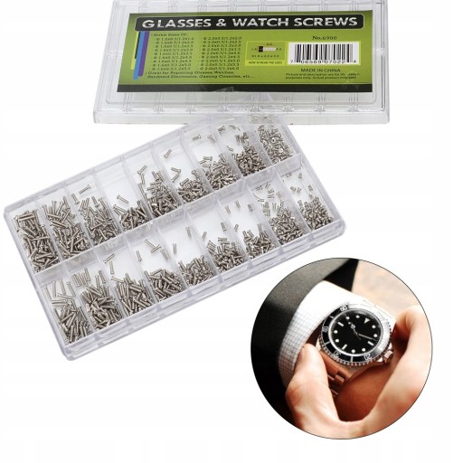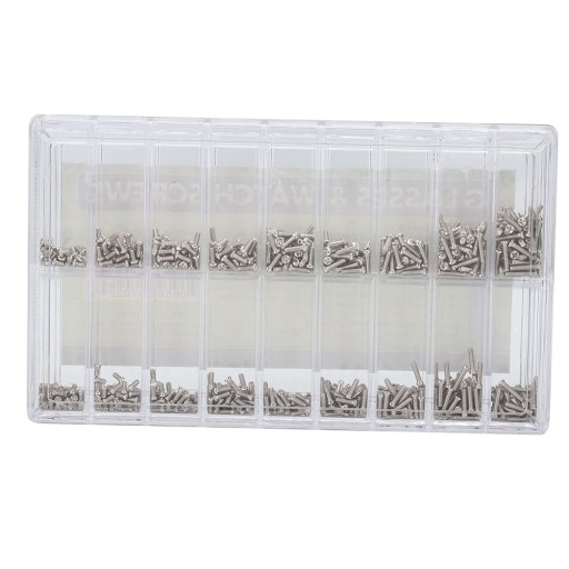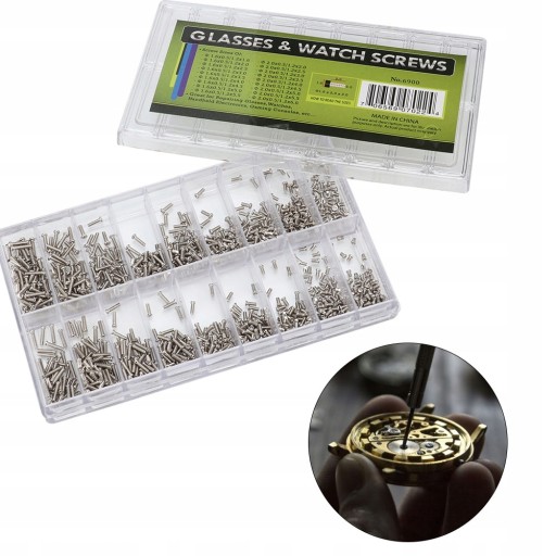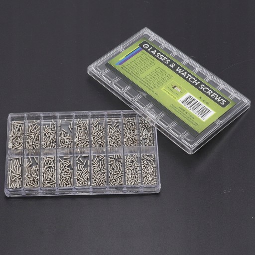 Zestaw mini śrubek, używany głównie do naprawy okularów lub zegarków.