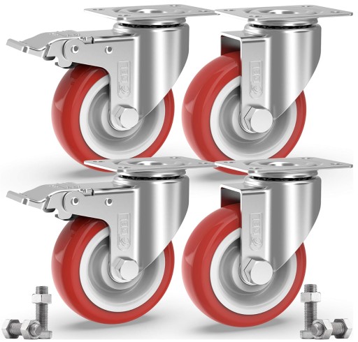 - Ilość w Zestawie: 4 sztuki (2 z hamulcem, 2 bez)