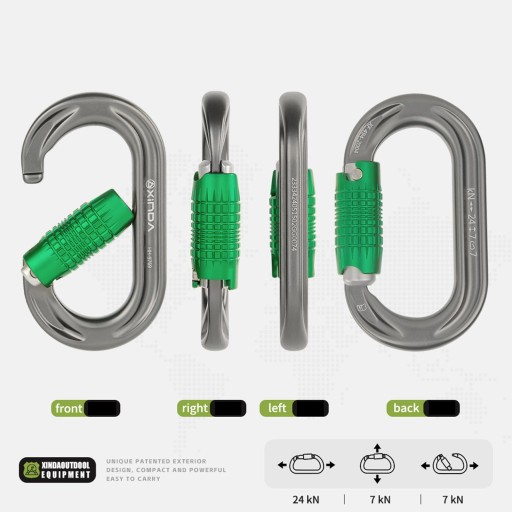 [Karabińczyk z blokadą]: Bardzo łatwy w użyciu, można z łatwością obsługiwać ten karabinek, stabilną pracę, solidną i mocną wytrzymałość na rozciąganie oraz obciążenie 24KN.