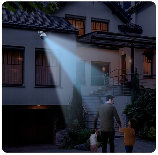 • Kolorowy tryb nocny. Dzięki dwóm wbudowanym reflektorom punktowym i profesjonalnym soczewkom optycznym kamera rozświetla obraz i wiernie odzwierciedla pełną gamę kolorów.