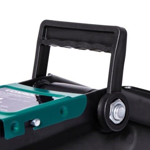 - Podnośnik posiada dwa koła obrotowe z łożyskami kulkowymi dla łatwego manewrowania