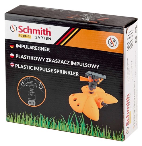 Zraszacz obrotowy 3-ramienny regulowany na podstawie w kształcie motyla. Zraszacz ogrodowy wykonany jest z wysokiej jakości trwałego tworzywa.