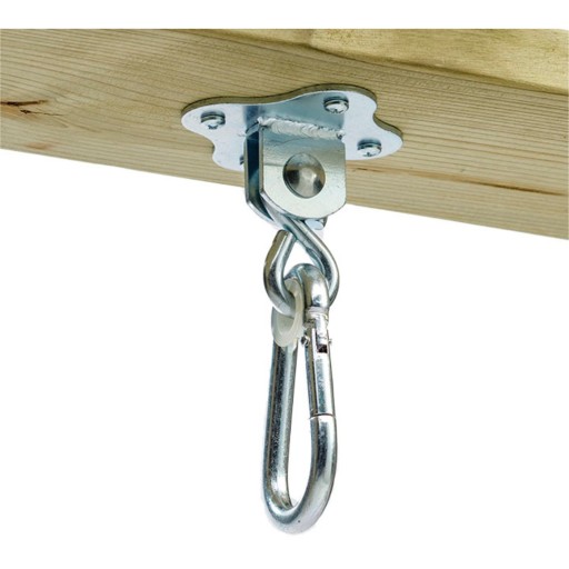 Wewnętrzny hak huśtawkowy KBT został zaprojektowany specjalnie do montażu w pomieszczeniach lub pod wiatą garażową. Wieszak na huśtawkę jest idealny dla wszystkich, którzy chcieliby mieć huśtawkę, ale nie mają (dużego) podwórka. Ale również wtedy, gdy jest zbyt zimno, aby bawić się na zewnątrz, dzięki huśtawce KBT można huśtać się w zimie! Hak huśtawkowy KBT jest chroniony bardzo grubą powłoką galwaniczną i wyposażony w trwałe łożysko nylonowe. Materiał mocujący nie jest zawarty w zestawie.