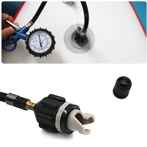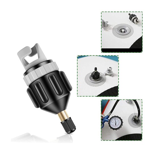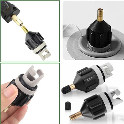 Produkt wykonany z wysokiej jakości materiału stopowego, mocny i odporny na wysokie ciśnienie.Jest to złącze zaworu powietrza do pontonów, desek do wiosłowania na stojąco i łóżek nadmuchiwanych.