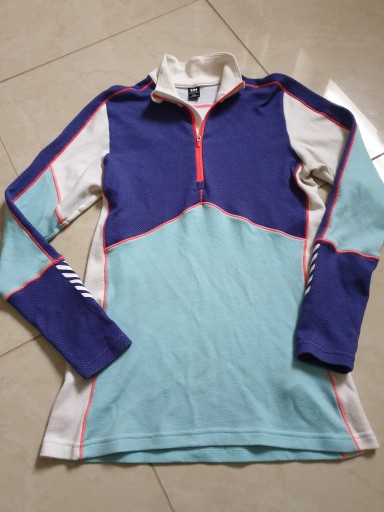 HELLY HANSEN KOSZULKA KRÓTKI ZAMEK L,JAK NOWA,dł całkowita 63cm,szer pod pachami 46cm,dł rękawa od szyi 70cm,zapinana na krótki zamek 57%wełna merino,POLECAM