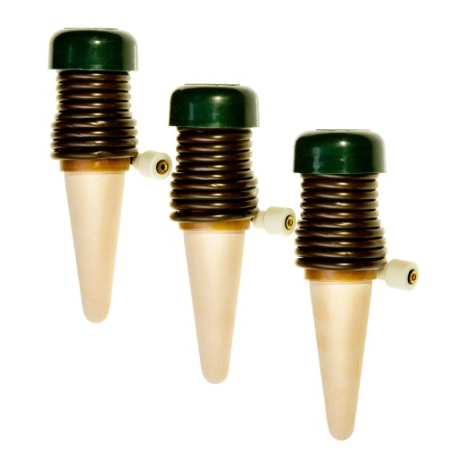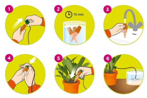 Nawadniacz Blumat Classic do podlewania indywidualnych roślin doniczkowych w domu, na balkonie lub tarasie. Dostarczanie wody odbywa się poprzez gliniany stożek, umieszczony w doniczce z rośliną. Jeśli ziemia otaczająca stożek jest sucha, woda jest pobierana ze stożka, który uzupełnia ją automatycznie pobierając ją ze znajdującego się w pobliżu pojemnika z wodą za pośrednictwem sylikonowych rurek doprowadzających wodę o długości 60 cm i średnicy 3 mm. Dzięki dozownikowi roślina sam kontroluje swoje zapotrzebowanie na wodę. Instalacja jest bardzo prosta: wystarczy otworzyć zielony korek na głowicy i napełnić stożek wodą, zamknąć pokrywkę i namaczać zamknięty nawadniacz przez 1 godzinę w wodzie aby umożliwić nasiąknięcie wodą. Następnie należy włożyć ceramiczny stożek do ziemi, a koniec silikonowego wężyka do pojemnika z wodą.