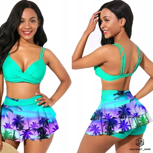 ❤️ Piękny modny kobiecy strój bikini z szortami i spódniczką mini