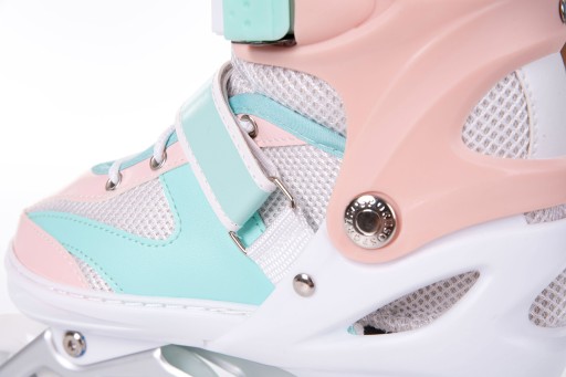 Łyżworolki posiadają 4-stopniową regulację rozmiaru, dzięki czemu but będzie rósł wraz z nogą dziecka. Jest to niewątpliwie oszczędność czasu i pieniędzy, a produkt posłuży zdecydowanie przez dłuższy czas.