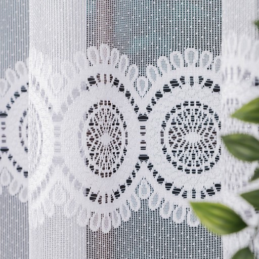 Tkanina żakardowa, z której wykonana jest ta firanka, charakteryzuje się wysoką jakością i trwałością. Jest ona delikatna w dotyku, co sprawia, że firanka prezentuje się bardzo elegancko i subtelnie. Dodatkowo, tkanina ta jest łatwa w utrzymaniu czystości, co pozwala na długotrwałe zachowanie jej pierwotnego wyglądu.