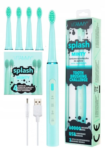OUTLET VITAMMY SPLASH MINTY Szczoteczka soniczna do zębów 8 lat + miętowa