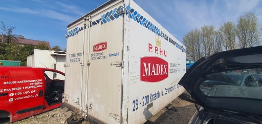 Przedmiotem sprzedaży jest kontener IZOTERMA o wymiarach zewnętrznych 5,5m długi, 2,5m szeroki, 2,5m wysoki, stan dobry jak na zdjęciach, szczelna. Przed dokonaniem zakupu proszę potwierdzić czy część jest dostępna.
