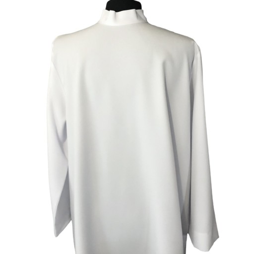 Alba lektorska z zamkiem na ramieniu. Materiał - strecz - tkanina średniej grubości, nie prześwituje, charakteryzuje się tym, że jest stabilna, ale lekko się naddaje. Tkanina jest bardzo praktyczna, nie gniecie się. Starannie odszyta, bardzo ładnie się układa.