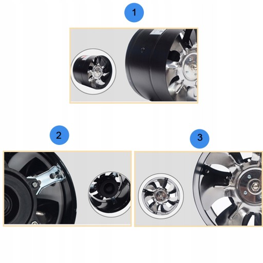 Konstrukcja wentylatora osiowego, płynne promieniowanie, stabilna wydajność produktu, może szybko wejść w stan roboczy.