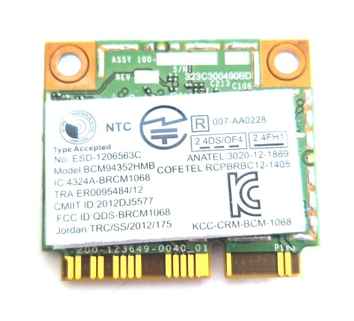 - OZNACZENIA: BCM94352HMB / BRCM1068 / LENOVO FRU 03T8215 / 03T7135 / 20200381
