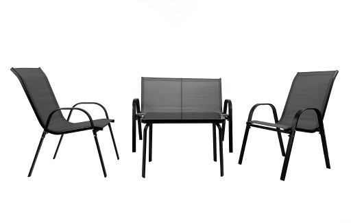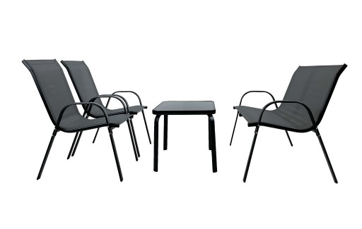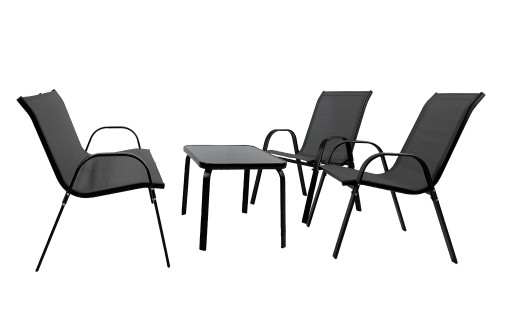 ✔️Materiał: stelaż: stal; siedzisko: textilene, blat stolika czarne szkło 5mm