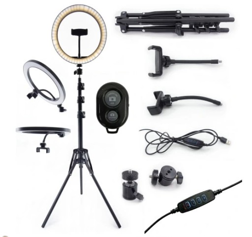 ⭐️ W centralnej części lampy pierścieniowej znajduje się uchwyt na telefon komórkowy.