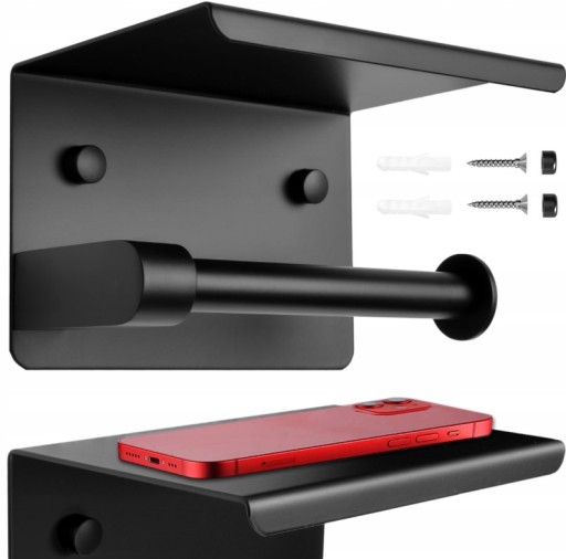 UCHWYT NA PAPIER TOALETOWY Z PÓŁKĄ NA TELEFON CHUSTECZKI CZARNY METALOWY WC