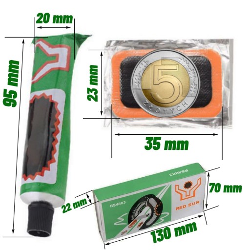 - Klej do łat: W zestawie znajduje się również klej do łat, który należy używać by mieć pewność że nasze łatki nie będą przepuszczały powietrza.