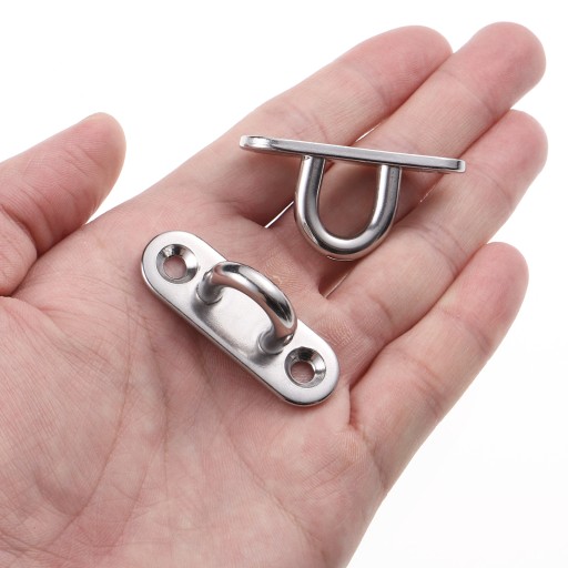 ✅1 x zestaw 4 szt. Podłużna podkładka ze stali nierdzewnej Płytka z oczkiem Zszywki z pierścieniem Hak Pętla Konstrukcja w kształcie litery U Śruby Hak montażowy Wieszak