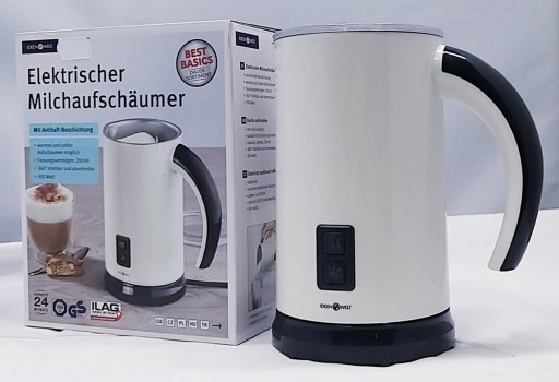 Pyszna mleczna pianka! Do cappuccino, latte macchiato, wielu napojów i deserów. Elektryczny spieniacz do mleka umożliwia spienianie na gorąco i na zimno ok. 250 ml mleka. Pojemnik na mleko jest obrotowy o 360 ° i wyjmowany. Dzięki wyjmowanej nasadce mieszającej i powłoce antyadhezyjnej ILAG spieniacz mleka jest łatwy do czyszczenia. Praktyczne: włącznik zasilania z lampką kontrolną i zwijaniem kabla w podłodze. Moc: około 500 watów. Sprawdzone bezpieczeństwo Intertek