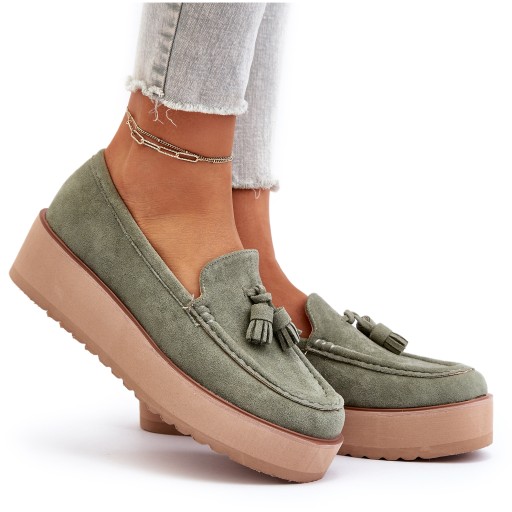 Mokasyny Damskie Na Platformie Z Frędzlami Zielone Mialani - rozmiar 36