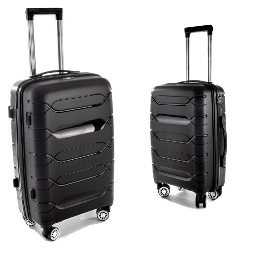 *Polipropylen to materiał, który charakteryzuje się elastycznością. Nawet po kilkusetkilogramowym nacisku skorupa wgniata się, po czym wraca do swojej prawidłowej postaci. Jest to najczęściej używany materiał w produkcji wysokiej jakości walizek.