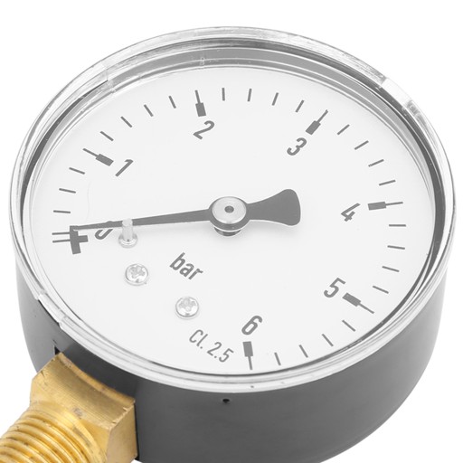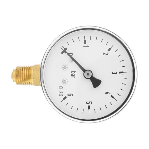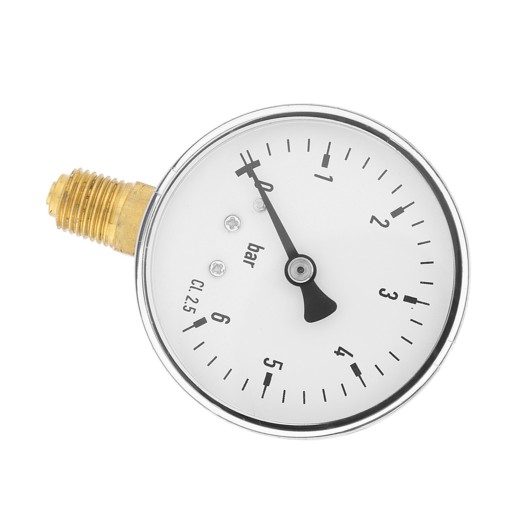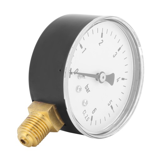 Ten manometr to 6 cm tarcza zegarowa, skala do pomiaru w barze.