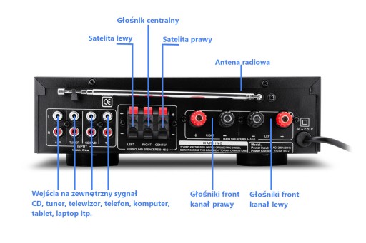 - Impedancja głośników: 4- 16 Ohm