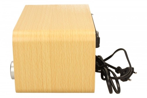 Funkcjonalny, prosty w obsłudze radioodbiornik stacjonarny w drewnianej obudowie.