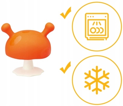 Specjalnie zaprojektowany gryzak przynosi dziecku ulgę w bólu podczas ząbkowania. Oryginalny kształt przypominający grzybka pozwala dziecku ssać gryzak. Dodatkowo gryzak może służyć również jako kubeczek na przekąski z przyssawką. Wystarczy przekręcić kapelusz na drugą stronę i kubeczek gotowy :) Gryzak rozwija zdolności chwytania dziecka. Kształt gryzaka i jego kolorystyka zachęcą Malucha do zabawy. Zabawa grzybkiem sprawi dziecku wiele radości. Można używać go w zmywarce, mikrofalówce, a także zamrażarce.