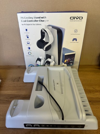 Stojak na konsolę Playstation 5 jest wyposażony w wentylator chłodzący o wysokiej wydajności, pasuje do konsol Playstation 5 Digital/Disc, stacji ładowania dwóch kontrolerów PS5, stojaka na słuchawki, gniazda na pilota do multimediów PS5, gniazda na dysk twardy PS5 i Miejsce na 14 kart do gier PS5. Pomaga zaoszczędzić miejsce, utrzymując ulubione gry na wyciągnięcie ręki i porządek w obszarze gry. To świetny wybór na prezent dla gracza PS5, który potrzebuje schludnego organizera na mnóstwo akcesoriów do gier.
