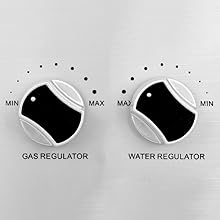 Wystarczy przekręcić pokrętło, aby ustawić przepływ gazu i wody. Do tego urządzenia należy użyć reduktora ciśnienia 28 – 30 mbar.