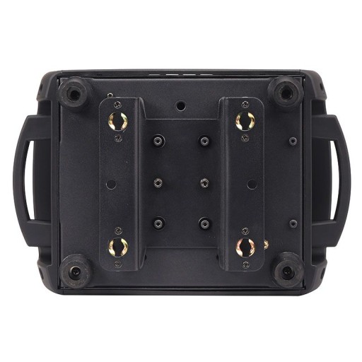 Dolna część VENOM SPOT 150 SPY RING wyposażona została w dwie szybkozłączki, umożliwiające ruchomej głowicy pracę na rampach oświetleniowych i kratownicach w pozycji wiszącej. Do wygodnego i bezpiecznego przenoszenia zastosowano solidne uchwyty znajdujące się po obu stronach podstawy reflektora scenicznego. W tylnej części umieszczone zostały złącza zasilania, w tym tzw. „podaj dalej” umożliwiające przekazywanie napięcia bezpośrednio z urządzenia do urządzenia, oraz wejścia i wyjścia XLR dla sygnałów sterujących DMX. W części przedniej znajduje się panel sterowania w postaci czytelnego, kolorowego wyświetlacza LCD oraz czterech przycisków (Menu, Enter, Up, Down). Za ich pomocą możemy wybrać jeden spośród kilku trybów pracy urządzenia: