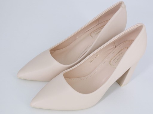 CZÓŁENKA NA OBCASIE SKÓRZANE BUTY NA SŁUPKU BEŻOWE DAMSKIE 40