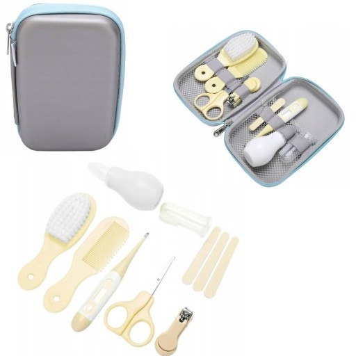 Niezbędne 8 sztuk narzędzi do pielęgnacji niemowląt zaspokoi Twoje potrzeby. W zestawie szczotka do włosów, grzebień do włosów, obcinacz do paznokci, pilnik do paznokci, nożyczki, czyścik do nosa, termometr i szczoteczka do zębów.