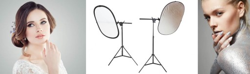 Uniwersalny zestaw do fotografii z owalną blendą uchwytem i statywem oświetleniowym.