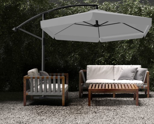 Parasol wykonany z wysokiej jakości materiałów. Posiada wodoodporny materiał, dzięki czemu jest odporny na warunki atmosferyczne. Składanie i rozkładanie jest bardzo proste dzięki korbce.