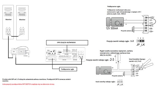 - Zasilanie wideodomofonu: Z transformatora przez 2 przewody