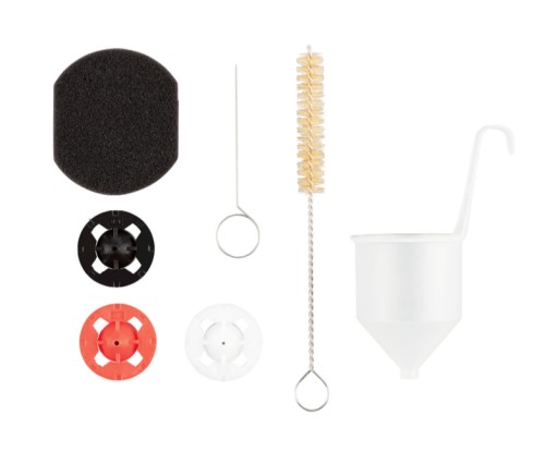 ✔ Akcesoria w zestawie: 4 dysze (Ø 1,5 mm / 1,8 mm / 2,2 mm / 2,6 mm - wstępnie zmontowane), 1 miarka do pomiaru lepkości, 1 szczoteczka do czyszczenia, 1 igła do czyszczenia, 1 filtr