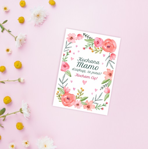 Kolorowa kartka z motywem kwiatowym będzie idealnym upominkiem do wręczenia z okazji Dnia Mamy.