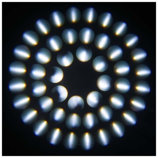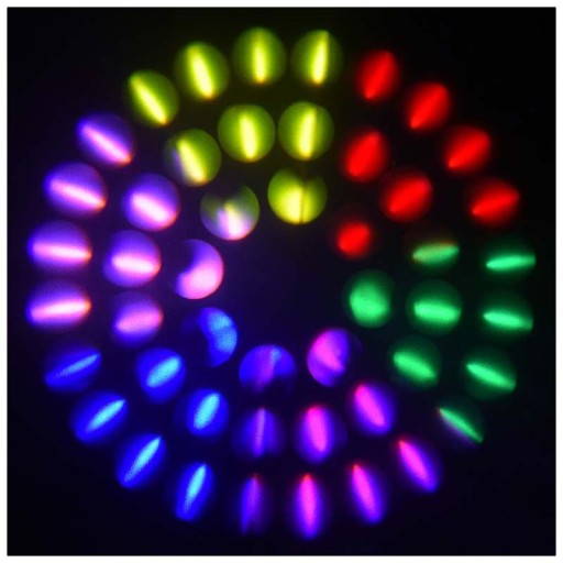 - Tarcza gobo: 12 stałych wzorów + open, wzór animacyjny, gobo shake, efekt wody