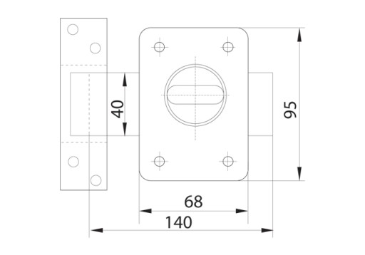 - Zamek drzwiowy nawierzchniowy z pokrętłem.